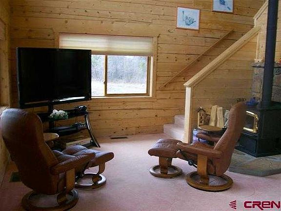 This secluded cabin in the woods is a perfect year-round or vacation home! Light and bright with lots of windows, this home has a large master bedroom and bath with a small deck on the second floor plus a loft sitting room and small office. The main level has 2 additional bedrooms, a full bath, laundry room and the great room plus kitchen and dining area. There is an 8x24 foot covered front porch. There is a 2-car detached garage with unfinished space upstairs for whatever extra uses you may have. There is water to the garage as well. Pre-inspected!!! Log home by Ponderosa Log Homes in Pagosa Springs.