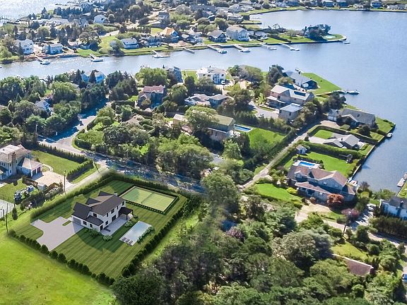 M & M Custom Homes is well under way on construction on the first of 3 superlative homes being built in an exclusive waterfront community on Middle Pond Road in Southampton. 45 Middle Pond will exhibit the ultimate four-season Hampton experience in a private setting offering generous room sizes, masterful construction and exquisite finishes throughout nearly 7,000 SF on three levels of superbly finished space. The white, plank clad residence welcomes all through a double height foyer as beautifully finished white oak floors spread out to find an open floor plan offering a living room warmed by its own fireplace and the fully equipped kitchen with professional appliances including large center island with seating, custom acrylic cabinetry, stone/quartz countertops, 48" stainless steel Sub-Zero refrigerator/ freezer, 48" Wolf range, 2 dishwashers and 2 sinks. Flanking this fabulous kitchen is a breakfast area and a butler's pantry leading to a formal dining room under a decorative ceiling. A guest suite, powder room and a two-car garage. serviced by a unique mudroom offering sauna and pool bath, complete the first floor. Upstairs the master wing, running from the front to the back of the residence, offers a large bath with soaking tub, shower room and radiant heat, a dressing room, a pair of walk-in closets and a generous sleeping chamber. Three additional guest bedrooms, each with baths ensuite and a laundry room round out the second floor. An open staircase runs to the lower level that additionally offers a bedroom suite, recreational space, gym area and a tiered home theater with state-of-the-art audio/ video system. Outside ample covered and uncovered stone terracing overlooks the 20' X 40' heated Gunite pool with spa, set within a cool, porcelain tile surround, and an all-weather tennis court, all framed by a professional landscape package and verdant lawn. Additional amenities include 400-amp electrical service, 4 zone HVAC, central vac, foyer chandelier lift, Marvin windows, 6 zone Sonos system, high efficiency LED lighting throughout and low voltage set up for cable TV and WIFI. With a real dearth of new construction in this price range south of the highway, much less with tennis. coupled with the ability to still customize the finished product to suit your tastes and personality, now is the time to contact us for more information or your own private tour of this soon to be sensational estate