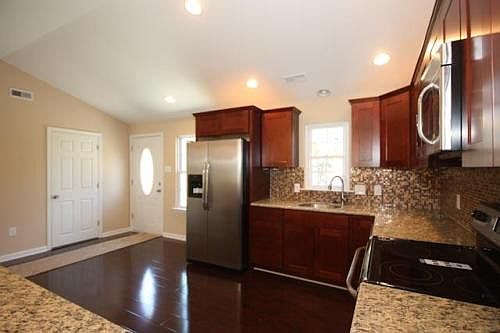 Like New Construction! This beautifully landscaped & expanded single has been remodeled from top-to-bottom and features all new heater, central air, plumbing, 200 amp electrical service, insulated windows & vinyl siding. Arrive and you will immediately fall in love with the open floor plan & beautiful hardwood floors throughout. Spacious living room, dining area & dream kitchen with vaulted ceilings, recessed lighting, granite countertops, glass mosaic tile backsplash, new stainless steel appliances and self closing cherry kitchen cabinet's & drawers; powder room; laundry room with entrance to garage. Off of the kitchen there are 3 spacious bedrooms with new wall-to-wall carpeting & an amazing 3 piece ceramic bathroom with subway tile. French doors in the living room open up to the spacious back yard with hardscaping that is perfect for entertaining & barbeques! All you need to do is unpack! Close to parks, shopping centers and schools. Make your appointment today.