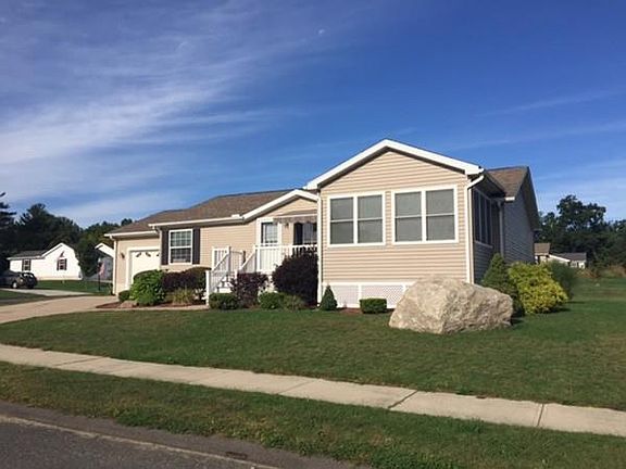 A 55+ active adult community. Open floor plan with sun room that has hardwood floors. One car garage, shed and front porch with retractable awning. Gas fireplace,skylights,kitchen island and dining area. Concrete patio, central vac and central air. Lease fee of $413 includes taxes, city water, city sewer, trash/recycling, road maintenance. Compare that to your taxes now and you will see this is affordable retirement living! 3500 sq.ft. community center with fitness room, library, conference room and common room. All appliances to remain including washer and dryer. Island bar stools to remain.