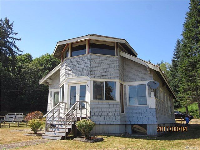 View of the Willapa River is yours in this stately 1930s traditional home. Main level boasts original wood floors and moldings. Unfinished upper story with master bedroom overlooking the river. Two story home with full basement on about half an acre. 3 bedrooms, upper and main level bathrooms, farm style kitchen with custom built-ins.1 full bath room and a 3/4