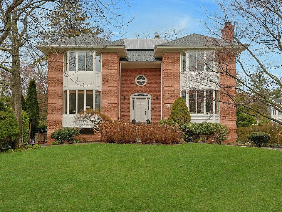Welcome to 45 Montrose Road – Where Luxury Meets Modern Living. Step into this beautifully designed home with an open-concept layout, soaring 9-foot ceilings, and an abundance of natural light streaming through bay windows. The expansive floor plan seamlessly blends living and dining spaces, with French doors opening to the wrap-around deck—ideal for effortless indoor-outdoor living. A striking spiral staircase adds a touch of elegance, while two fireplaces—one gas and one wood-burning—provide cozy gathering spots. The renovated (2023) chef-inspired kitchen features new stainless steel appliances, custom cabinetry, and ample space for family meals and entertaining. Adjacent to the kitchen, the inviting family room boasts a wood-burning fireplace and French doors leading out to the deck, offering the perfect space to unwind or entertain. A large office with a bay window on the first level provides an ideal work-from-home space or could easily be converted into a guest room. The first level also includes a powder room. Upstairs, the expansive primary suite is a private retreat, offering a large bedroom with bay window, a spa-like ensuite bath with a jetted jacuzzi tub, double shower, and oversized vanity, two walk-in closets and a dedicated makeup vanity enhancing the space’s luxury. The second level also includes two additional spacious bedrooms, a hall bath with a large vanity, tub and shower, and a versatile fourth bedroom—also perfect as an office or sitting room with French doors opening to a private roof deck. For added convenience, the second floor also features a well-appointed laundry room. This home has been meticulously updated featuring a new roof (2021), solar panels for energy efficiency (2021), a new AC system on the second level (2021), new garage doors and openers (2021), new smart washer/dryer (2023) and a new central vacuum system (2021). The fully finished basement includes a recreation room, an office with egress (potential for a legal bedroom), full bathroom, additional room used as a gym, versatile room for additional office, wine storage and utilities. The attached two-car heated garage completes the lower level. Sitting on a generous .32-acre lot, the large, level yard offers plenty of space for play and relaxation. Located in the sought-after Scarsdale School District, just a 5-minute walk to the Blue-Ribbon Awarded Greenacres Elementary School, this home also offers easy access to parks, amenities, and the train station (just 30 minutes to Grand Central). 45 Montrose Road is more than a home—it’s where your family can grow, thrive, and create lasting memories.