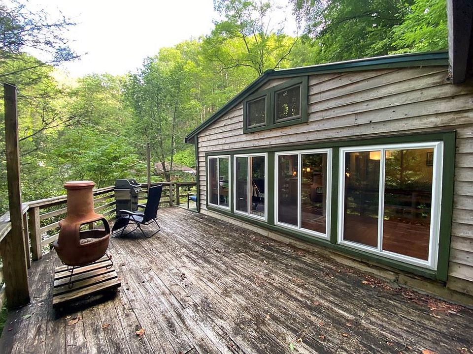 This little cabin is an excellent option for an inexpensive paddling retreat in Nantahala Gorge. It is ten minutes from NOC, and enjoys a great view of Paint Mountain and the sounds of Big Creek and a closer tributary.