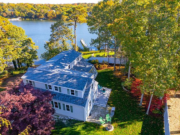 Wow!! Set high, overlooking Perch Pond, the views are beautiful and mesmerizing (and only a tiny corner of the property is in the flood zone). Looks like waterfront, acts like waterfront, but the actual strip of waterfront is owned by the abutter. Explore the pond and Great Pond to your heart's content. The peace and quiet of the end-of-road location will be a tonic to your spirit; and the surprisingly spacious lot (with specimen trees) will be a welcome refuge. Renovated in 2006-7, and again in 2018, the home looks, feels and behaves like a younger house. The great room, overlooking the pond, is 30'X19'! Gourmet kitchen has Bosch/LG appliances, Thomasville cabs and granite counters. Brand spanking new roof! The plumbing, electrical, shingles, Anderson windows, 5 zone gas heat, and all flooring were new in 2007, with over $200k in improvements since, including q new septic system. Enjoy the 1st floor bedroom suite, as well as 3 expansive bedrooms on the 2nd floor (along with the laundry). The sunroom is irresistible. Privacy, comfort, convenience, views, and water access are the hallmarks of this gracious home and setting. Stunning! A joy to show.
