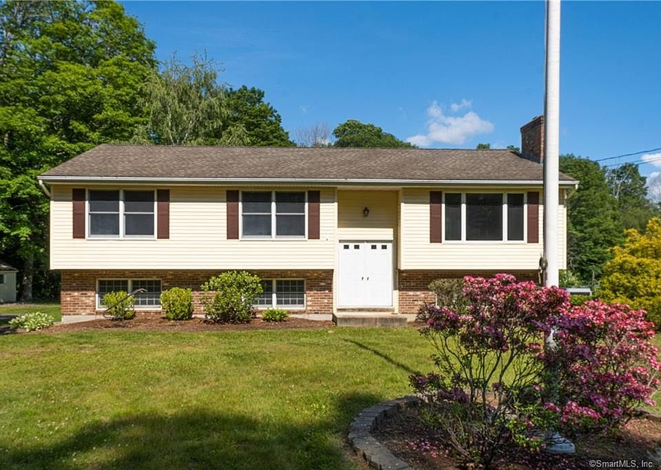 Welcome Home to Moulton Hill Road! A raised ranch style home in the quaint town of Stafford, Ct. This home features 3 bedrooms, 2.5 bathrooms, with a total of 1588 square feet. Large eat-in kitchen with sliding doors leading to a deck and the most peaceful backyard. Enjoy relaxing on the cedar swing or entertaining around the fire pit. Living room with plenty of natural light and a beautiful brick wood burning fireplace. The primary bedroom offers an ensuite full bathroom. Two more bedrooms and a full bathroom complete the main floor. The finished lower level features a family room with a wood stove, sliders leading to a backyard patio, and half bath with a laundry area. Freshly painted with new carpeting throughout the home. Outside, you'll be delighted to find a huge level yard with a Kloter Farms shed for extra storage. 2 car garage with new garage doors. New Boiler (2015). Located on the CT/Mass border. Schedule your showing today!