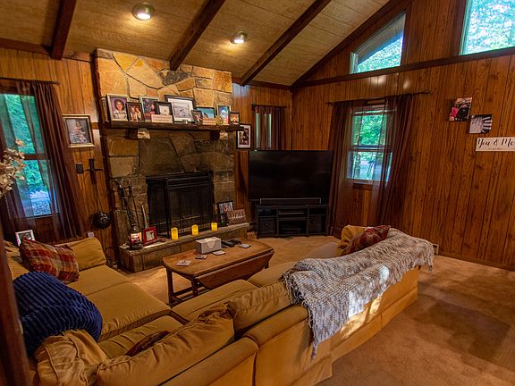 • Fireplace features: Wood Burning, Stone, Living Room, Wood Burning Stove
