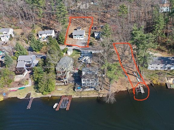 Rare opportunity to own a property WITH waterfront parcel and dock! Great way to own in Groton at fantastic price. This modest home is located with homes of greater value currently marketed for 599K making this home a great investment. Enjoy single leveling living with sun filled rooms including: oversized living room with fireplace with is open to nicely sized kitchen with deck access, 2 bedrooms and full bath. Additional space in partially finished lower level. 2 rooms, one with a "summer kitchen" to enjoy gathering after a outing in the boat. A second bath with shower, unfinished storage space and garage make this home special. Open green space, shed, flat wide driveway allow penalty of room for gatherings. VERY RARE is the strip of land that is abutting the water giving the house waterfront land and private dock. 45 Redskin Trail has potential. Buyers bring your cosmetic ideas and enjoy the endless potential and fun, year round vacation living.