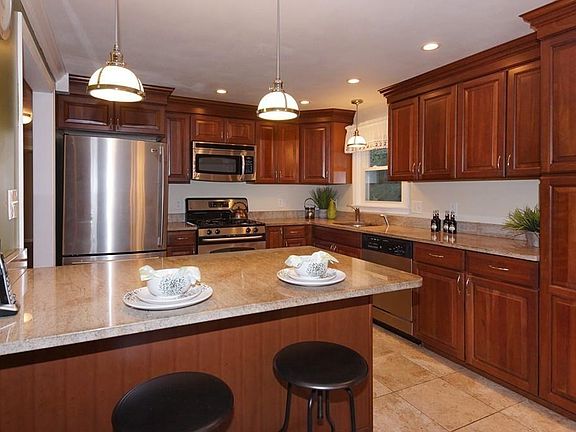 Don't miss this updated & affordable 3 bedroom, 2 bath split entry home that has been well maintained and tastefully and extensively renovated in 2007. Beautiful cherry kitchen w/ granite counters, center island w/breakfast bar plus stainless steel appliances, recessed and pendant lighting complete the attractive kitchen. The top level offers crown molding throughout and hardwood flooring (except for kit/dr and baths which have CT) plus a large living room, 3 bedrooms and full bath while the lower level offers a large fireplaced family room with brand new wall-wall carpet, another bath, sitting and laundry room. The exterior is wrapped with Hardiplank siding, 10-year-old roof, Harvey Windows and a large Trex deck while the interior has been equipped with 2 updated baths featuring slate and tile plus new fixtures. All situated on a dead-end street close to everything Burlington has to offer and just a 2-minute drive to rte.128.