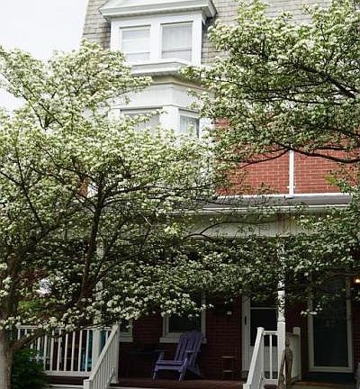 Come see this spacious 4BR brick end unit townhouse with great covered wrap around porch! Open LR/DR with wood floors, Kitchen has plenty of cabinets & pantry. 3 generous BR's on 2nd floor, one has a brick accent wall and access to balcony overlooking backyard. One additional BR on 3rd floor, plus a sitting room with access to roof top deck that overlooks York City! Gas FWA & CAC, main flat roof replaced June 2020, Gas water heater recently replaced, replacement windows. Convenient east end location!