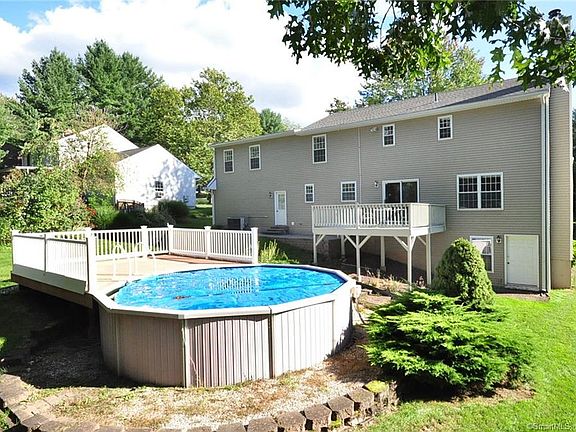 MOVE IN READY 3 bed/3.1 bath colonial located in the desirable Forestville neighborhood. The main floor features an eat-in kitchen with granite counters and hardwood flooring that expands into a fireplaced family room. The adjacent sliders open up into a backyard oasis complete with above ground pool, patio and decking. Perfect for that vacation at home! The hardwood formal dining room/living room and laundry facilities complete the first level. Upstairs master bedroom suite consists of a generous sized walk-in closet and tiled bath. Two additional carpeted bedrooms and shared bath complete the second floor. An added bonus is an additional 500 sq. ft. of living space located above the garage which can be accessed via the back door or garage. A great spot for working at home complete with office furniture, sky lights and full bath. This is a TERRIFIC home and a MUST SEE! A new roof 2021.