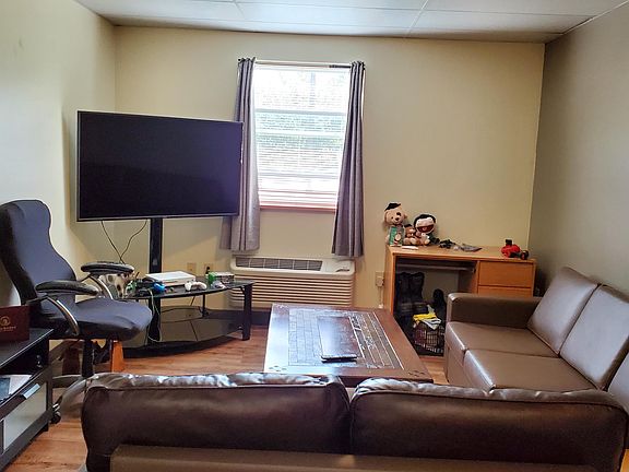 Apartment can come furnished or we can remove any unwanted furniture 3 story building on the outskirts of Kutztown Pennsylvania, right along the Saucony Creek. Across the street is the Kutztown Elementary school and we are very close to the middle school and high school. We are also about 50 yards from the public pool (close enough to walk, far enough so you don't hear!). All bedrooms have their own heating and A/C. Most studios have built in microwaves. Studios do not have washer/dryers nor dishwashers. Some apartments come furnished with leather couches. All apartments have a 45" Smart TV, basic cable and high speed internet included. Tenant pays electricity.