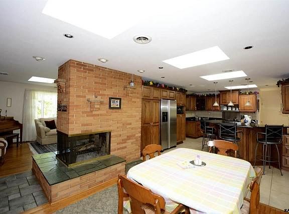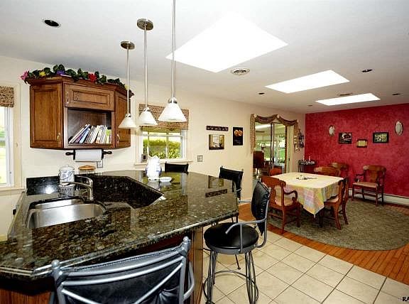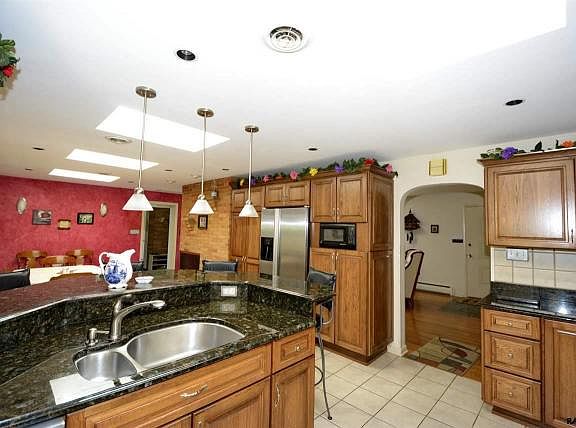New Kitchen with tile floors, granite countertops, stainless steel appliances,JennAir Grill. Large 4 seasons room with skylights.New A/C in 2009. Replacement windows. Wood floors and 2 fireplaces. Family room in lower level. Lg laundry room with kitchen and bath.Fenced yard.Over-sized 2 car garage.