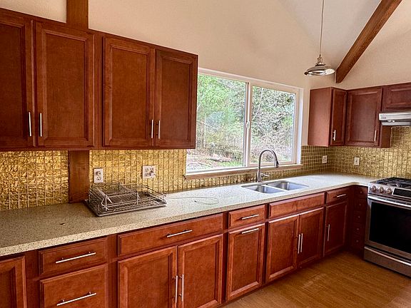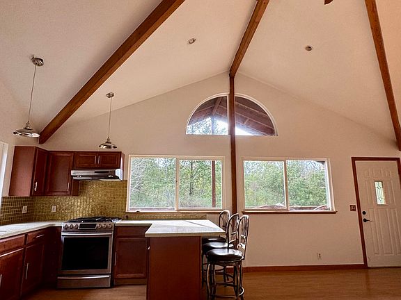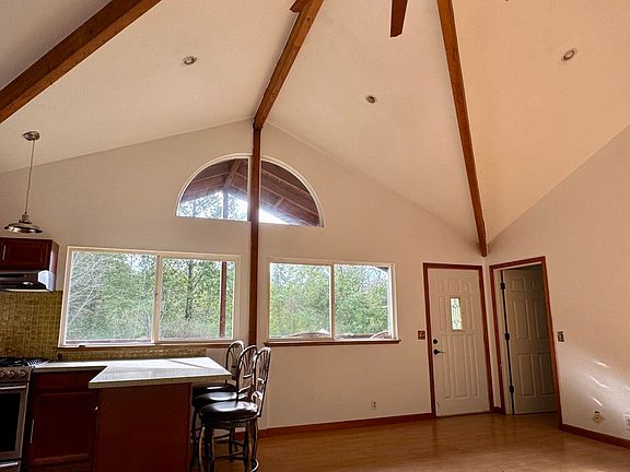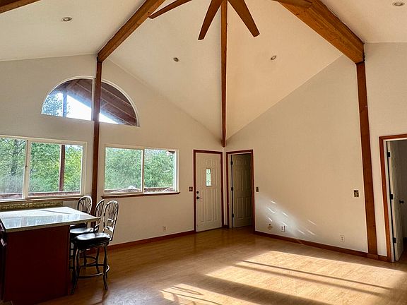 Welcome to this beautifully crafted Southern Humboldt home, situated on 1.34 acres. Conveniently located right in town, this property is within walking distance of local stores and South Fork High School, offering both accessibility as well as the peace and quiet of being tucked away above Oak St. Step inside and be greeted by vaulted ceilings adorned with wood beams, creating a warm and inviting atmosphere. Sunlight generously pours through the large windows, illuminating the open floor plan and highlighting the updated kitchen. A brand new heater was recently installed as well. The property features a gated entrance and a long concrete driveway leading to the residence. A spacious basement adds versatility, offering storage or potential for additional living space. Outside, enjoy the wrap-around deck with sweeping views of the surrounding mountains.