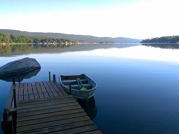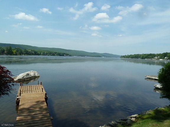 WHERE ELSE CAN YOU LIVE W/ A 9 MILE LAKE IN FRONT, A STATE OWNED WILDLIFE PRESERVE IN THE BACK, & A NYC BUS STOP AT THE END OF THE ROAD! IT IS BEAUTIFUL ALL SEASONS! FOLIAGE IN FALL, CALM MORNINGS INTHE SUMMER, SUNSETS, SNOW COVERED FROZEN LAKE IN WINTER. WITH THE GREENING OF SPRINGTIME, EVERYTHING COMES TO LIFE! COME, LOOK AT THIS CONTEMPORARY HOME WITH WINDOWS THAT BRING IN THE BEAUTY OF EVERY SEASON. HIGH CEILINGS, HARDWOOD FLOORS, CENTRAL AIR FOR THE SUMMER AND A STONE FIREPLACE FOR THE WINTER. THE UPPER LEVEL MASTER SUITE OFFERS A FULL BATH AND AMAZING VIEWS. THE UNPAVED ROAD IS QUIET WITH MINIMAL USE. THE LAKEFRONT OFFERS A SANDY BOTTOM AND A "BIG ROCK" WHICH IS A BIG HIT! JUST SIT THERE AND ENJOY, OR DIVE IN FOR SWIMMING. THE DOCK WILL FIT AN 18' BOAT. SEPTIC INSTALLED IN 2009 FOR A 1 BR HOME