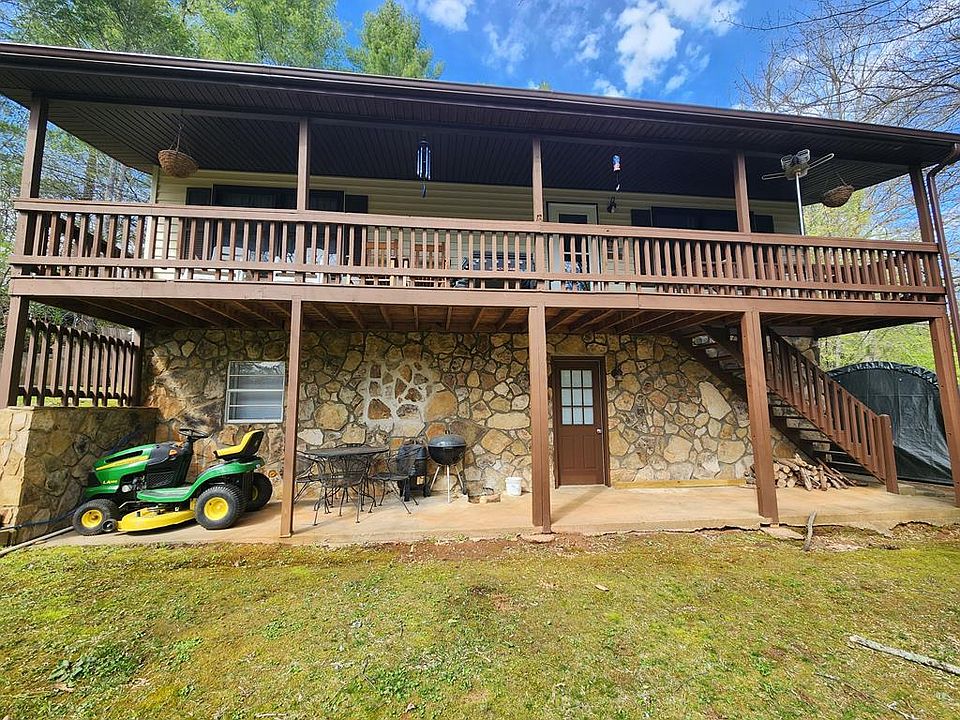 Wonderful location - only 3 miles to Walmart, Aldi, ChickFila, Hwy 74/23. Huge amount of living space - 3 additional rooms in basement for storage, sleeping, office etc. New well pump, including pipe and wire Feb 2023, new roof 2021, new HVAC 2015, septic pumped 2021, 2 car 20x24 carport with extra storage behind it for toys and tools, concrete driveway goes to 2 parking areas around house, gorgeous large covered back porch, walk-in pantry in kitchen area, new 80 gallon electric water heater, 2 full baths recently renovated, new LVP in basement rooms, tile in laundry and bathrooms, carpet in 2 upstairs bedrooms, lots of storage space and closets, main floor living that could easily be made handicapped accessible. Come check it out! Please note: 911 address for this home is also listed as 134 Fulcher Creek Dr.