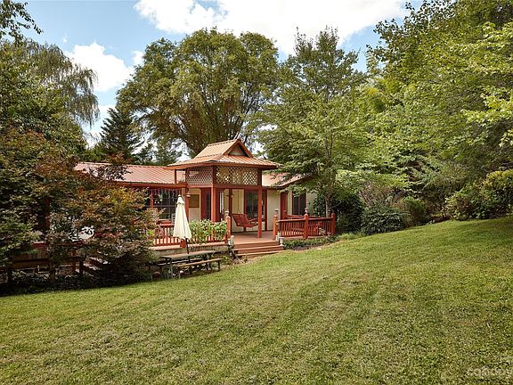 Welcome to your own Japanese Zen Garden! Gorgeous botanical garden setting with bamboo grove, koi pond, and bridge. Tremendous potential to convert the outbuildings into additional living space or rental units. Spacious 3 bed / 3 bath home. Wonderful open floor plan with abundance of kitchen counter space, breakfast bar, dining nook, and gas fireplace. Spacious master bedroom with walk-in closet and large ensuite bathroom with soaking tub. Full bath off the kitchen! Tile in bathrooms, new floors in the kitchen and living room New roof and water heater! The green-space and landscape at this home is a must-see! Neighborhood peacocks will visit occasionally to enjoy the serenity and tranquility of this amazing property! Only 15 minutes to downtown Asheville, and about two minutes to the Local Joint & Trout and Lily Market. Blue Ridge Parkway entrance within 7 minutes. Wonderful neighborhood, and incredible peaceful setting. Close to amenities and nature!