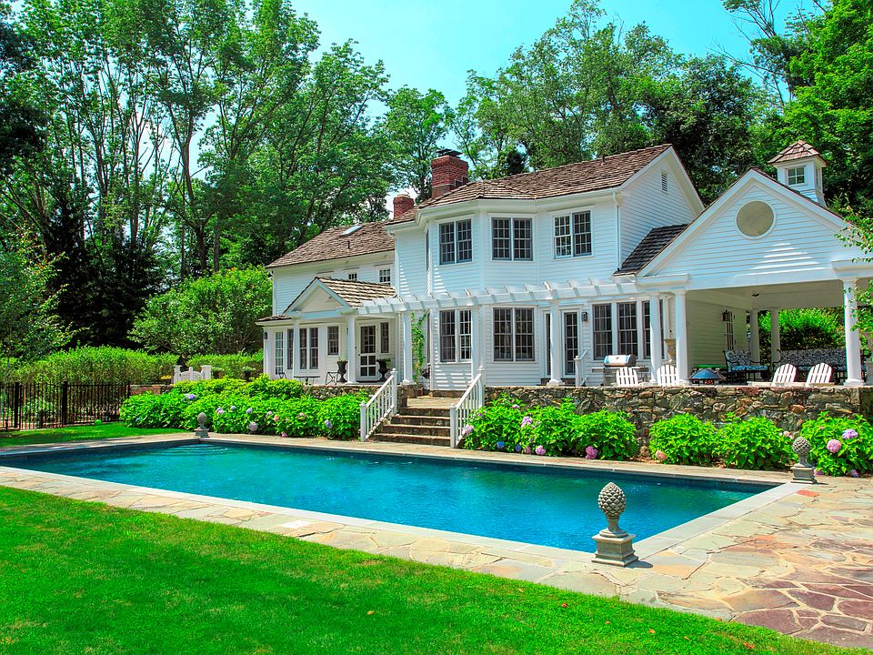 Ferris Farm. Classic Bedford Colonial magnificently restored in 2013 from top to bottom, inside & out. Spectacular property complete w/pool, pond & beautiful English gardens. Light drenched rooms blend indoor & outdoor space. Fabulous, expansive stone terrace, 44' gunite pool & 16'x24' outdoor Dining Rm/Covered Porch. Chef's kitchen opens to Great Rm w/frpl & built-ins. Beautiful Master Suite w/frpl & new Baths. Separate 1100 sq. ft. Gym & Office. Brand new 3 car garage w/storage above. All surrounded by 200 acre Westmoreland Sanctuary and direct access to the Bedford Riding Trails.