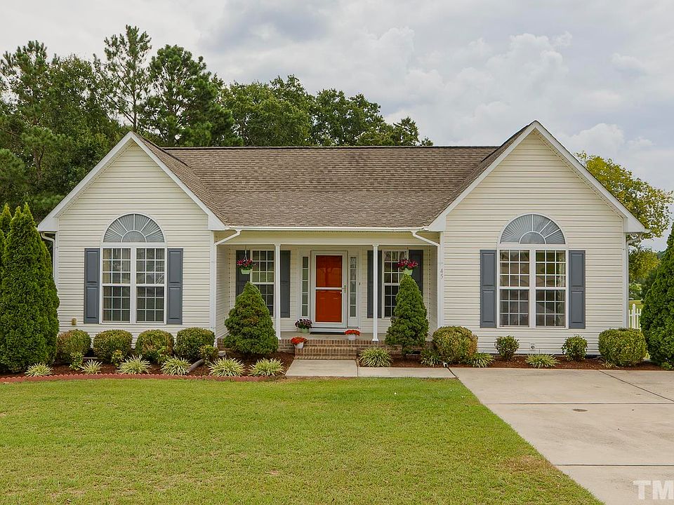 Easy living, move-in ready, ranch home on a beautifully landscaped and scenic, .6 acre lot! Welcoming front porch. Updated kitchen with granite counter tops, SS appliances + pantry (refrigerator conveys). Sunny, open dining area. Spacious family room with gleaming hardwood floors, gas log fireplace, and custom builit-in. Vaulted primary bedroom with large, walk-in closet + private bath with dual vanity. Peaceful deck with picturesque pond view. Roomy storage shed. Quiet, cul-de-sac street. A Must See Home!