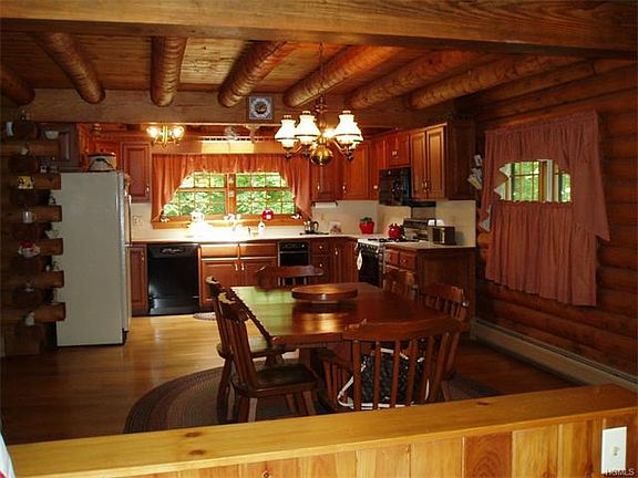 "Home Sweet Home!" retreat haven welcomes you w/a peaceful, long tree lined driveway. Mother Nature surrounds the entire house. A beautiful white cedar log home offers an eat-in-kitchen w/cherry wood cabinets, skylight, hardwood floor, cedar pantry closet & door to backyard. A stone fireplace is the focal point of this spacious living room w/window(s) on every wall. Bedrooms w/vaulted log beamed ceilings. Unfinished basement w/high ceilings, central vac (not hooked up), whole house generator w/100 gallon propane tank, 200 amp electrical service & Peerless Beckett oil burner - 2 yrs. wood and coal stove (not hooked up). House has been fitted with central air ducts but not a compressor. Central vac, central air & wood stove remain but not represented. Home is situated on 5.6 acres & 1.6 acre of land locked property in East Fishkill. Ski & Snowboarding season is the perfect time to think about owning your year round or weekend home. A golden opportunity awaits to call this home your own!