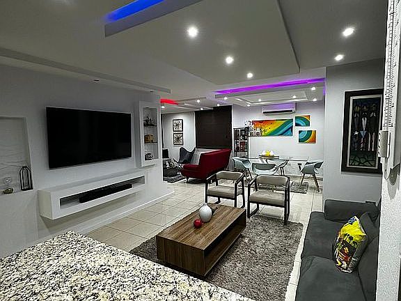 Modern with high-end finishes on this ready to move in home. exclusive gated community “Vega Dorada”. *No Flood Zone* 7 minutes from Cerro Gordo Beach, 4 Minutes from Ritz Carlton Reserve in Dorado; 4 bedrooms, 2 1/2 bathroom, 1 walk-in closets, full renovated terace, 2 carport garage with added storage space, 7 A/C units, brand new kitchen, new appliances (Microwave, Refrigerator, stovetop), completely furnished, 600 gallon water reserve, electric water heater, transfer switch with 11k watts automatic electric generator, and many more. The community counts with out door gym, pool, basketball court. *Hoa is included with rent*. $2,750 a month. (What ever comes first goes, either rent or buy)