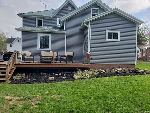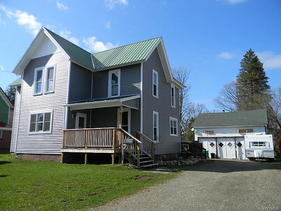 This 2 family home features newer siding, windows and has metal roof! Newer front porch and back deck to enjoy that overlooks great backyard! Large detached garage with upper storage. The main floor features spacious entry room, eat in kitchen, formal dining, living room, 2 bedrooms and 1st floor laundry. The 1st floor laundry could be 3rd bedroom. Upstairs offers kitchen, dining room, French doors to living room and 2 bedrooms. The upstairs bath has hook ups for washer and dryer. Many of the rooms have hardwood floors. Walking distance to tennis courts, restaurants and shopping. Let the rent from the upstairs apartment help with the mortgage payment. Home is also listed under single family ML#B1246786