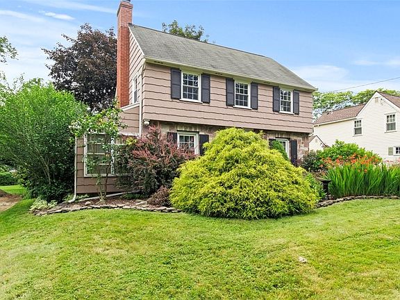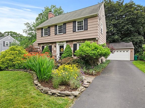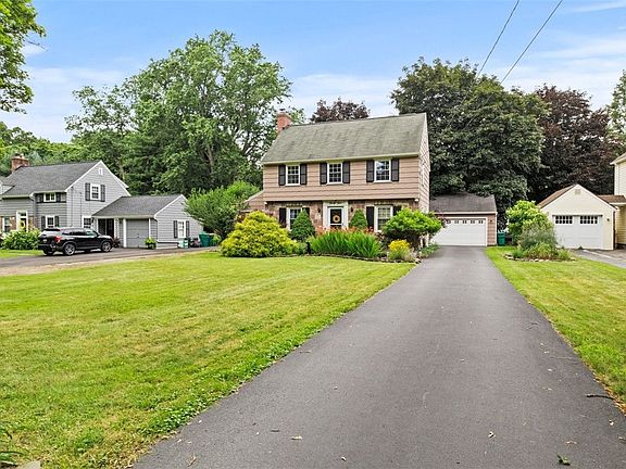 Classic 3 bedroom, 1 1/2 bath center entrance colonial with Medina Sandstone front of the house. Located on the Penfield/Brighton border with Penfield schools and close to shops and services. Steps to Corbett’s Glen and Ellison Park Trailhead. Updated windows, ceramic tile and hardwood flooring throughout. Kitchen features vintage solid wood cabinetry, quartz countertops, newer stainless steel appliances and a butler's pantry. Spacious living room boasts a wood burning fireplace. Charming sunroom has baseboard heating for year round enjoyment. Relax in the large fenced yard with 2 patios and a pergola. Full basement features workbench and built-in wood cabinets for plenty of storage. New 200 amp service, Energy Star HVAC and water heater. Freestanding corner cabinets in the dining room and bookshelves in the living room are excluded. Delayed negotiations begin on Monday 7/17/23 at 4:00 pm.