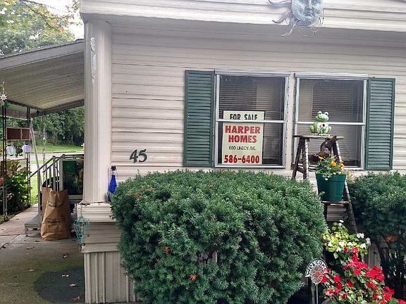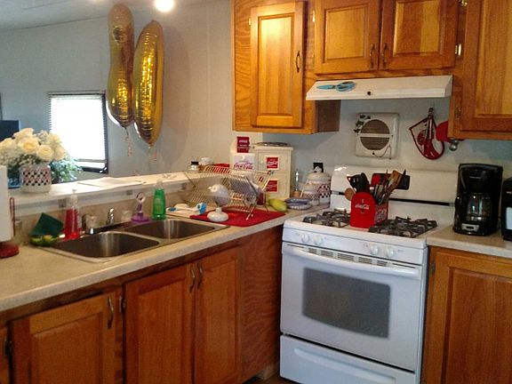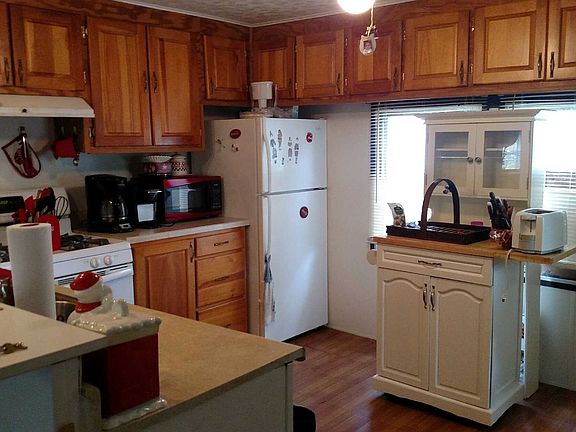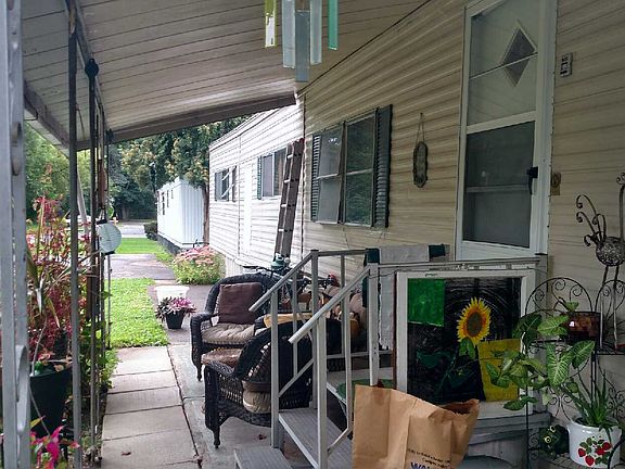 Enjoy your new home on a corner lot in Harper Park Penfield This home offers large kitchen open to living room. Washer / Dryer hook ups in the bathroom. Furnace and stove have Propane Gas. This home has 2 driveways and a shed. Patio with awning. Park rent is $565 which includes taxes, water, recycle and garbage pick up
