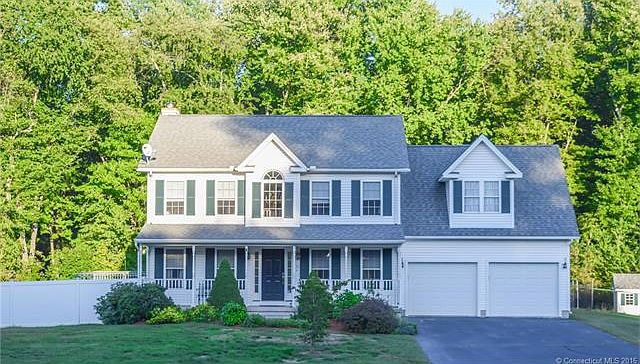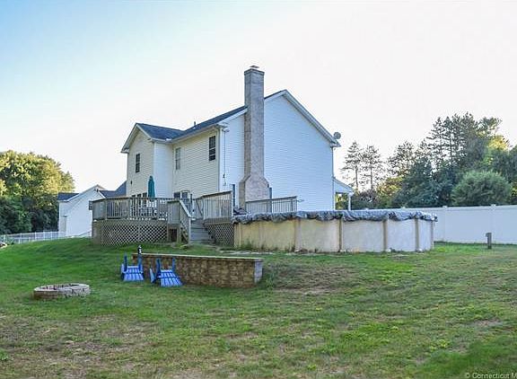 Lovely, westerly-facing, 2238 sq. ft. Colonial in quiet, East Windsor neighborhood! Located on 1.34 acres, this 4 bedroom, 2.1 bath home offers many attributes. A hardwood floor foyer opens to both a formal, hardwood floor dining room, and carpeted living room / office. The hardwood floor is continued into the stainless-steel-appliance kitchen with its breakfast bar and tiled, Eat-in Area. The gas fireplace equipped, open-from-kitchen, carpeted family room with its fireplace-flanking, natural light delivering, vertical windows is the perfect indoor entertainment arrangement, while the slider to an over-sized rear deck is the perfect outdoor complement! The second floor, carpeted, cathedral-ceiling, Master bedroom suite with tiled floor, dual sink, Master bath, is accentuated by a finished, 22'X13' bonus / bedroom, 2 additional, carpeted bedrooms, and a nicely-appointed, tiled common bath. The partially-finished, carpeted, lower-level recreation room with crown moldings and abundant recessed lighting will keep them entertained for hours. This home also embodies a westerly-facing front porch, ideal for watching the setting sun! The grounds have lovely front landscaping, a fenced-in back yard, a nice shed, and an above-ground pool with privacy fence! The rear of the property has mature, perimeter-lining trees that add to the privacy of this beautiful home!