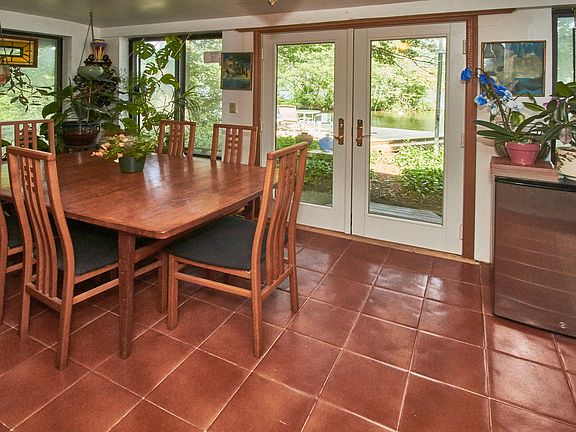 This 3BR 2 full bath lakefront custom renovated home features 1/3 acre in a cove location w/ custom built dock. Many custom features include vaulted ceilings, arched doorways, & barrel vaulted Paladium windows. Solid wood panel doors throughout the home- New wood stove insert & liner in 2017 in the Field stone fireplace visibility throughout. Separate DR w/ windows overlooking cove & Mountain landscape. Kitchen is open w/ corner sink, ample counter space & lake visibility & new floor in 2017. MBR Suite features a full tiled bath w/ skylight & an adjoining sun room & deck.. Lakefront & private! Potential for first floor living- first floor bedroom is being used as an office & full bath & laundry on same level. Lot is a combination of woods & Country gardens w/ Field stone walls w/ Lg open side yard.