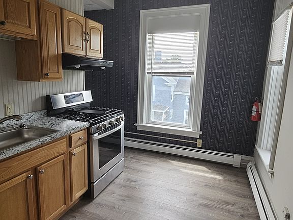 A sunny, 1 bedroom apartment with high ceilings that makes it feel spacious. This 2nd floor apartment is located near downtown shopping and restaurants. The apartment includes heat, hot water, electricity, trash removal and snow removal. Coin-operated washers and dryers are located in the building. One off-street parking space is available. A 1 year lease is required along with payment of first month rent and a security deposit equal to one month's rent. Renters insurance is also required. Prospective tenant must complete a Zillow application and include proof of income and possess good rental references.