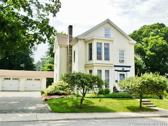 One of Groton Bank's historic homes renovated for today's living style. Set on a large double lot, a gardener's delight. The backyard is fenced with a private deck and large in-ground pool surrounded by lush trees. The two car garage has new doors, separate electric and room for storage. Enter through the breezeway into the family room with genuine wood trim and a vaulted ceiling, continue into the light filled, heated stylish Sunroom enjoyable and relaxing year round. French doors allow you to close off the room to add peace and quiet to your sitting enjoyment. The remodeled kitchen is centered in the house, has white cabinets, an Island, and a casual eating area with room for a sizable table. The main floor has a formal dining room, a study and a formal living room. Head up to the second floor and walk into the stunning new full bath complete with a soaking tub, a large tiled shower, a tall double sink and matching tiled flooring. A true spa retreat. There are two other bedrooms on this floor. The third floor has steps up and offers two more rooms and a storage area. Walk to downtown Thames Street for a stroll along the Riverfront just steps away. Move in condition and pride of ownership can be seen throughout.