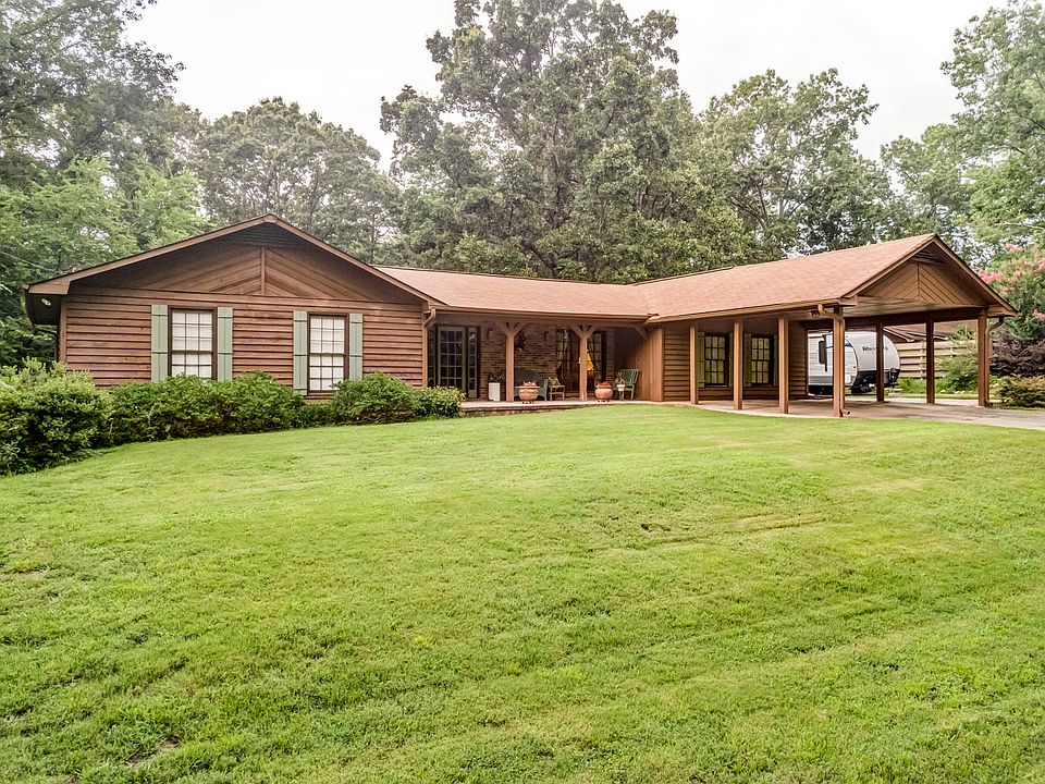 Cute ranch home on a finished basement! Enjoy country living & no HOA yet with city conveniences. Enter into the spacious fireside family room with beautiful wood beams. Beautiful hardwood floors & carpet only 2 yrs old. Large open kitchen with plenty of cabinet space and dining area. Enjoy morning coffee or evening dinners in the spacious sunroom. Finished basement w/living rm with fireplace, rec rm, bath and kitchenette. Private wooded lot. Covered carport plus parking pad for RV/boat. Close to Woodland Hills Golf Club, downtown Cartersville, Dallas & Lakepoint!