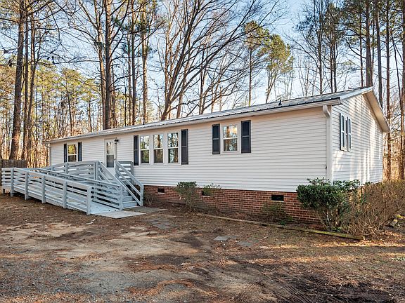 Location! Location! Close to Chapel Hill, Chatham taxes. Refurbished manufactured home across from Farrington entrance. 3 BD, 2 BA on 1+ acre. New metal roof, gutters, windows with screens, doors, baths. Countertops, new flooring, water heater, lighting. Refrigerator, stove. dishwasher, washer/drier included . Leave the rental game and build some equity! Owner is a licensed real estate agent.
