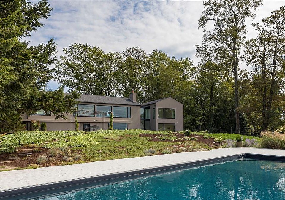 Perched on a hill in Rhinebeck with breathtaking views of the Hudson River and Catskill Mountains, this stucco architectural gem has been meticulously transformed over the past two years into a stunning riverfront retreat. Set on 11 secluded acres, this 4,600 sq ft home provides the ultimate in privacy and tranquility, with daily access to some of the most spectacular sunsets imaginable.