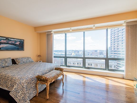 Stunning custom designed and reconfigured unit boasting 270 degree views! Located on a high floor clearing the views of Boston Harbor and the Airport, Financial District, all the way to Zakim Bridge, golden dome of the State House, Charles River and Cambridge, Boston Common and all the way to Prudential, Hancock and CITCO sign! Watch the sun rise from the balcony off your living room, and admire the ever changing sky of the sun sets from your Master Bedroom. Take in the dramatic night time views! This custom reconfigured unit offers elaborate built-ins throughout, including outfitted walk-in closets, oak hard wood floors, architectural ceilings w/ targeted lighting, LUTRON switches, custom window treatments, most w/ motorized system. Upgraded appliances featuring SUBZERO refrigerator, Marvel Wine Cooler, MIELE appliances including 5-burner gas Cooktop, Dishwasher, Oven and Microwave/Oven. Enjoy the lifestyle and & luxury offerings that 45 Province has to offer! Garage valet parking.