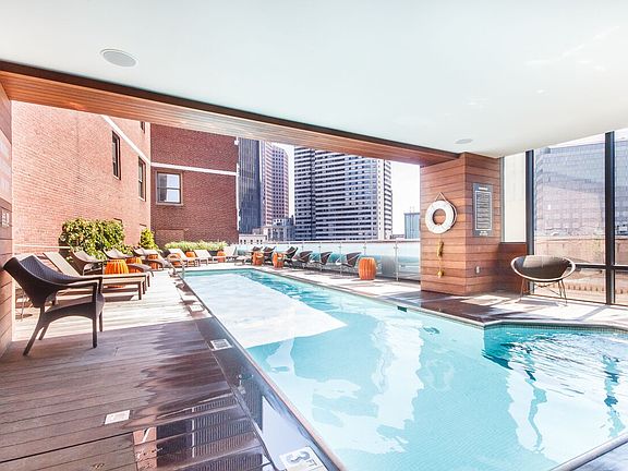 Recent Price Change!! Jaw-dropping 12-ft ceilings and glass wall windows throughout this rarely available 2-bedroom unit with DIRECT ELEVATOR ACCESS in the exclusive "North Flats" section of 45 Province makes it a hot ticket to hit the Spring market. Direct access to valet garage, a cavernous, wide-open layout with southern exposures, bamboo hardwood with floating sound attenuation padding, Sub-Zero fridge, wine fridge, crystalized custom dual glass vanity, and any variety of high-end finishes. Icing on the cake? Secured concierge entry through the main entrance, serene rooftop pool, well-equipped gym, and an Instagram-worthy roof deck.