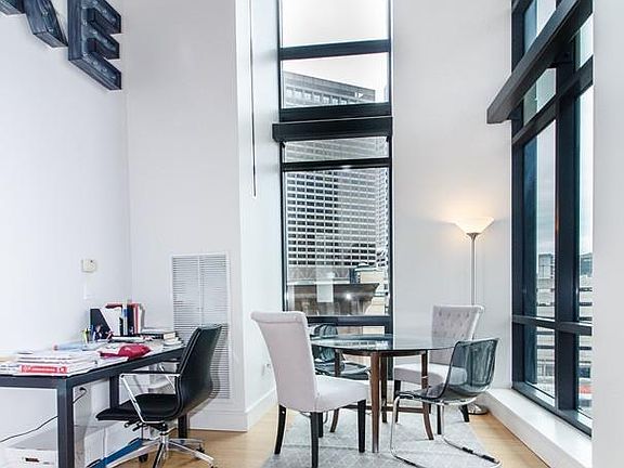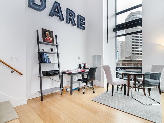 This custom 1 plus or 2 bedroom, 1 full and 1 half bath loft style duplex is stunning and spacious with an open living, dining kitchen floor plan. Floor to ceiling, double height, walls of glass with East - South exposure fill the home with light and urban views. An open kitchen features custom cabinets, Sub-Zero and gas cooking. The bedroom offers a spa like bath with oversize shower and double vanity. The Study / 2nd bedroom, is lofted and now used as den, office, guest bedroom with a half wall of glass that's open to the first level. Hardwood floors throughout on lower level. Great value in the low PPSF and condo fee which includes parking and HVAC. 45 PROVINCE is a luxury boutique residence, pet friendly, with amenities including Club Level w/ Fireplace Parlor / Library Lounge, Dining Room w/ Catering Kitchen, Screening Room; heated pool, spa treatment room, fitness center and 33rd Floor roof deck!