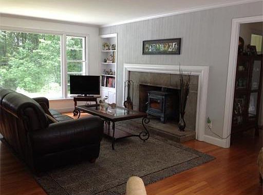 "Let the sun shine in and the memories begin" Can't miss this expansive, recent paint in and out oversized ranch. Enjoy the glorious, bright kitchen with spiral staircase that shares the open movie loft above. Boasts lovely hardwoods throughout and warm features of built in china hutch in dining room, plus gorgeous fireplace living room. 3 large bedrooms, recently renovated baths make this home easy to move in and start living! The home is set back 100" on 1.3 acres of very private land, quiet enough to enjoy entertaining on the 12'x48'deck. Perfectly convenient for the fast access of the work commute, but easy to enjoy the drive home and retreat to the serenity of quiet comfort. 2 car garage and dry basement with double oil tanks and new furnace. New roof and gutters will make this decision the right one if you want it all including walking or biking to Dawson Elementary School or even the beautiful Holden Town pool.