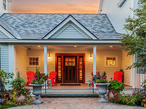 Constructed in 2014, this home stands as a testament to meticulous architectural craftsmanship. Upon entry, one is greeted by the impressive high-lofted, arched timber ceilings that gracefully span above the living areas. The walls and floors are adorned with carefully selected hardwoods, chosen for their elegance and richness, infusing each space with an air of sophistication. The kitchen, a culinary enthusiast's dream, boasts soapstone countertops that seamlessly blend practicality with style. It's a space where both cooking and aesthetic considerations have been thoughtfully balanced. What sets this home apart is its incorporation of modern engineering and energy-efficient materials. The inclusion of a solar array, thoughtfully nestled among the apple, peach and pear fruit trees, not only reduces energy consumption but also demonstrates a commitment to environmentally conscious living. Beyond the threshold, meticulously landscaped gardens and precisely manicured grounds beckon, transforming the outdoor area into a tranquil haven. This peaceful ambiance is further enhanced by the presence of nearby conservation land, complete with winding walking trails, allowing residents to immerse themselves in nature's serenity. As the sun sets, you'll be treated to stunning views from this distinguished address. Living at 45 Reservoir Road means enjoying life's finer pleasures in comfort and elegance. It's an opportunity to experience an exceptional lifestyle, day after day.