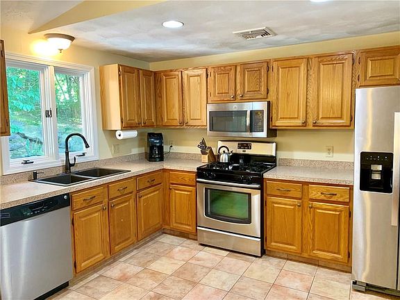 Privacy abounds with this gorgeous and young 3-4BR Raised Ranch that's perfectly nestled between the towering trees in Western Cranston. This home absolutely glows with natural light throughout it's modern open floor plan that boast cathedral ceilings, sparkling hardwoods, working fireplace that's all complemented by an open and updated kitchen complete with stainless steel appliances. Master bedroom en-suite, large family room, media room or potential 4th bedroom, central AC, gas heat and more. This home proudly sits on over 2/3's of a private tree lined acre, while overlooking an amazing neighborhood at the end of the cul-de-sac which shouts location. Minutes to the highway, while being near all your modern day conveniences makes this a perfect place to call home.