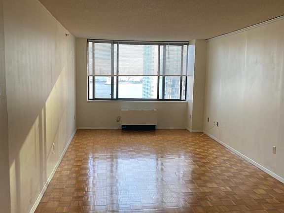 One bedroom on the 22nd floor facing east with Unobstructed view of NYC, Hudson river and Freedom Towers Approx. 850 Sq. ft. Available from April 1st Brand new renovated bathroom Hardwood floors Newly installed AC/heating units 2 walk-in closets Very bright, very spacious Water, gas included in rent. 24 Hr Front Desk Concierge New Gym with new gym equipment (currently closed due to COVID) Remodeled Lobby Community Room with pool table, lounge with TV/projectors, ping pong table, Foosball table, poker table, and kids play area. Washers and Dryers on every floor Parking deck right next door ($230 monthly parking fee) or you can find street parking