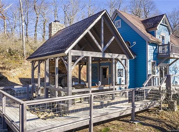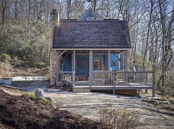 Fall in love with this forested 20-acre secluded mountain retreat. Enjoy the mountain vistas, babbling streams, and rhododendron groves that are found throughout the property. The cathedral ceilings highlight the stunning post-and-beam timberpeg construction featuring solid timbers, wooden pegs, and mortise-and-tenon joinery. The light-filled spaces, contrasted with the warm hues of the timber, create a cocoon of warmth. On a brisk night, cozy up to the woodburning stove -- or enjoy a family gathering on the expansive covered porch with a stacked stone woodburning fireplace. Drift off to sleep to the subtle lullabies of the forest. Awaken rejuvenated to the views of the morning mist rolling over the mountains. Find comfort and tranquility in this serene environment. Your perfect mountain retreat awaits nestled in the Blue Ridge Mountains and only 20 miles from downtown Asheville.