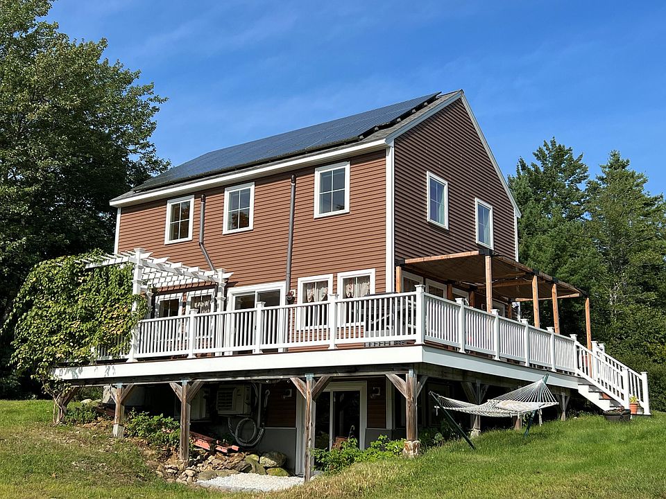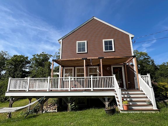 Charming custom Colonial nestled on 2 private acres in Whitefield with stunning views, quality construction throughout and energy efficiency. This 2 bedroom home features a third room for home office or guestroom, open concept kitchen, dining and living rooms, finished daylight basement, hardwood floors throughout and a spacious wrap-around deck with a trellis. Add to that energy efficient heat pumps and baseboard all powered by your roof top solar panels. Convenient to the Capitol, the mid-Coast and even Portland. Come see why Whitefield is central Maine's best kept secret!