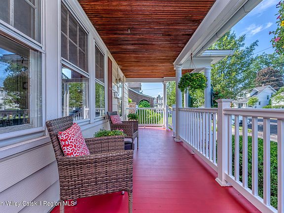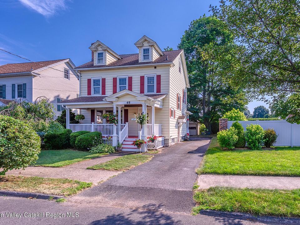 Charming Roosevelt Park 2-story home boasting original woodwork, hardwood floors, and elegant stained glass windows. Located in a friendly, walkable neighborhood close to everything Kingston has to offer, from restaurants, cafes and brew pubs to galleries and shops in Uptown, Midtown, and Downtown. The covered front porch welcomes you to enter where you are greeted by a cozy living room featuring a gas fireplace, perfect for chilly evenings. The dining room is open to the gourmet kitchen adorned with Cherry cabinets and stunning granite countertops. Upstairs, three bedrooms offer comfort and tranquility, each with its own unique character highlighted by hardwood floors and ample natural light. The full bathroom combines modern amenities with vintage charm. The basement presents additional living space, including a finished recreation/family room, a laundry area, and a versatile semi-finished area ideal for a home office or gym. A full walk-up attic provides ample storage or potential studio/work space, offering limitless possibilities. Outside, the front porch invites relaxation, while the private backyard beckons with a firepit area, perfect for entertaining guests or enjoying quiet evenings under the stars. This home is ideally situated for commuters, with easy access to major routes such as the NY Thruway, Trailways bus, and Amtrak & Metro North train stations. Nearby schools and hospitals add convenience to the vibrant lifestyle Kingston offers. Don't miss your chance to make this lovingly maintained home yours. Schedule your tour today and discover the timeless charm and modern comfort this property has to offer.