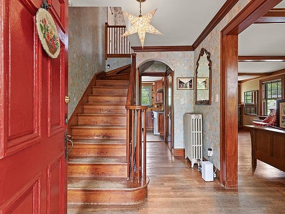 - Features: Beamed Ceilings, Flooring - Hardwood, French Doors, Deck - Exterior, Lighting - Sconce, Crown Molding