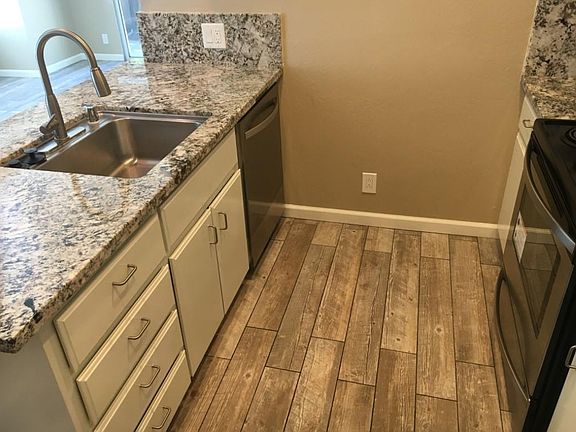 This is one of the units in a fourplex. Recently remodeled with hardwood floors and granite counters in kitchen. Dishwasher, stove and fridge already in place. Electric laundry hook-ups, high ceilings, nice natural light. Large patio with a second, smaller patio. Well maintained common area, parking available in rear. Garbage included in rent. No smoking, no pets.