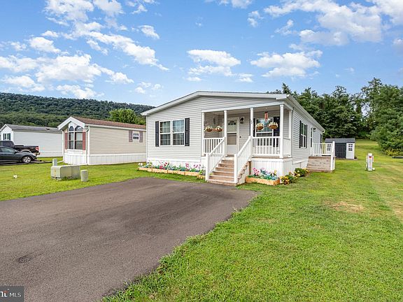 Welcome to this beautiful 3-bedroom, 2-bath home built in late 2022, offering 1,433 sq. ft. of modern living space. Step inside to a bright and open layout featuring a spacious living room with large windows and wood trim details. The kitchen is a true centerpiece with warm cabinetry, a center island, black appliances, and a dedicated dining area—perfect for entertaining and everyday meals. The primary suite includes a private bath with generous storage, while two additional bedrooms and a second full bath provide plenty of space for family, guests, or a home office. Recent upgrades include a 65-gallon water heater and a new over-the-range microwave for added convenience. Enjoy relaxing on the covered front porch, with flower beds adding curb appeal. The private driveway, community-maintained water and sewer, and quiet setting make this property both low-maintenance and welcoming. Located in a well-kept community with lot rent of $425/month, this home is just minutes from Halifax conveniences, while offering a peaceful neighborhood feel with beautiful mountain views in the backdrop.