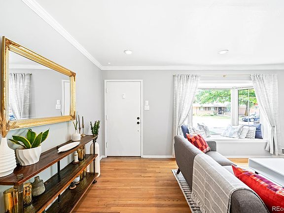 Revel in the welcoming charm of this meticulously updated Belmar home. Original wood flooring runs underfoot throughout the main level, complemented by soothing, light grey wall color. Natural light streams into a spacious living area through a large bay window with a cozy seat. A contemporary chandelier illuminates a bright dining area with outdoor connectivity to a covered patio. Stylishly remodeled, an open kitchen features stainless steel appliances, quartz countertops and soft-close cabinetry. A coffee bar and recessed lighting elevate the home chef’s workspace further. Three sizable main-level bedrooms share a full bath with modern tiles and a vessel sink. Downstairs, a finished basement hosts a large recreation room with a fireplace, a fourth bedroom, a bonus room and a ¾ bath. Retreat outdoors to a lush, .20-acre backyard maintained by a Rain Bird sprinkler system and permitted well water. Upgrades include a newer roof and a new furnace and A/C system installed in 2020.