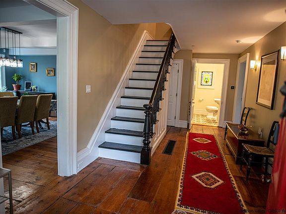 KARSTEN FARMS. This magnificent 1840s farmhouse has the best of the old and the new: a historic farm, completely modernized for the 21st Century with state of the art systems and appliances. Geothermal and radiant heating systems, electronic locking and alarm systems, sleek modern bathrooms and kitchen, refinished floors. Sprinkler system. With 4 en suite bedrooms, and a stand alone basement apartment with its own exterior access, this state of the art home works as an income producing BnB, or a luxurious single family home. The ground floor features a large dining room that can seat 20, and two adjoining parlor rooms that are perfect for entertaining. All have their own fireplaces. The second floor has 3 en suite bedrooms, one with its own sitting room. The 3rd floor master features a large walk-in closet, private balcony, and large 5 point bath. Outside are 125 acres of beautiful farmland, complete with ponds and rolling meadows. A three car garage and expansive barns round out the grounds. Minutes from historic Montgomery, one of the most desirable towns in the Hudson River Valley. Only 1.5 hours to NYC. This is the perfect home to start your life outside the city.
