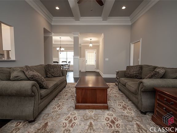 Welcome to this impeccably maintained 4 sided brick home located in the sought after swim/tennis neighborhood of Saint Ives just minutes from downtown Winder! Entering the front door from the covered front porch you are immediately greeted by the Great Room with soaring coffered ceilings, hardwoods throughout the living areas, and nicely detailed trim work and custom crown molding. This home also boasts a formal dining room with judges paneling, a super clean and efficient kitchen with custom cabinetry, over sized island, granite counter tops, gas grill range, double wall oven, and a separate breakfast room for those more informal meals. The spacious Owner's Suite is tucked away on one side of the home, and features high double tray ceilings, private exit to the covered rear patio, and the Owner's Bathroom with double vanities, garden tub, fully tiled shower, and a large walk in closet. The main level also features two nicely sized bedrooms opposite the Owner's Suite with a hall bath in between as well as the separate laundry room. Upstairs you will find a large loft area that is perfect for a gaming area, secondary entertaining space, or even a nice open office space. The fourth bedroom and full third bath are also on the second level. Make an appointment today to see this wonderful home in Saint Ives and check out your new home!